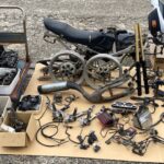 左のフロントフォークからオイルがにじんでいます。