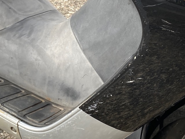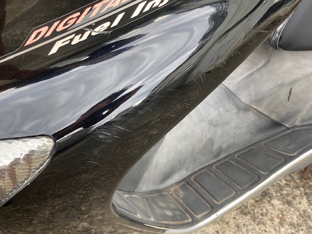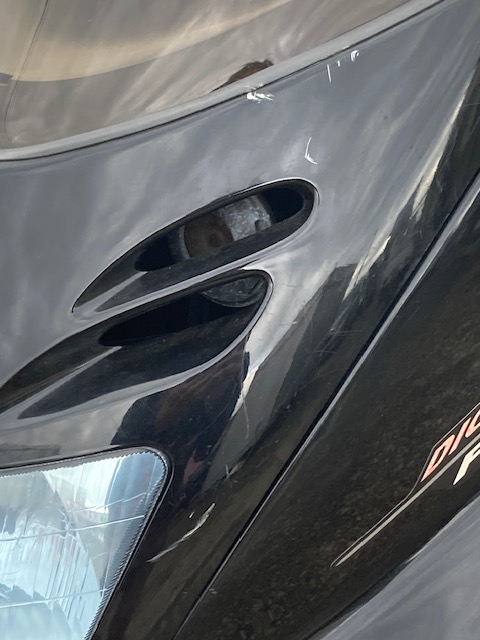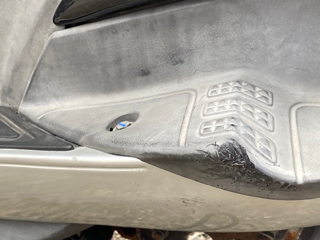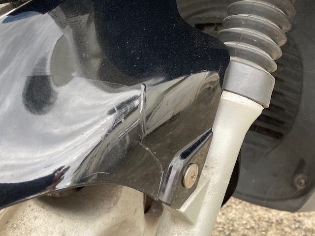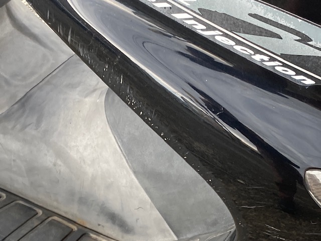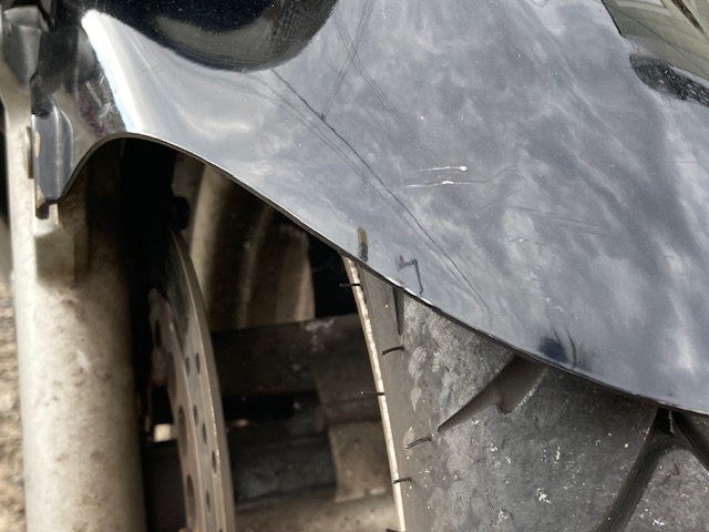フロントフェンダーの左側にはひび割れを補修した痕があります。