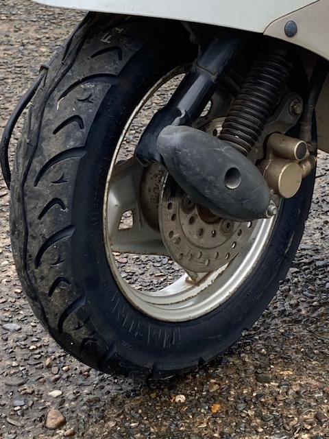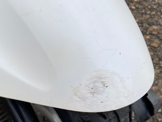 片側のフロントフォークのカバーが付いていませんが機能的には問題ありません。