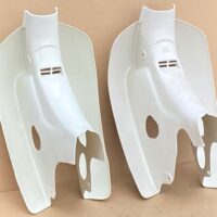 ホンダ リトルカブ用のレッグシールドです。 セル付き用とセル無し用が各1個ずつあります。 セル付き用が純正の中古品で、セル無し用が社外の未使用品です。 セル付き用の純正レッグシールドです。 1ヵ所にひび割れがあり裏側から …